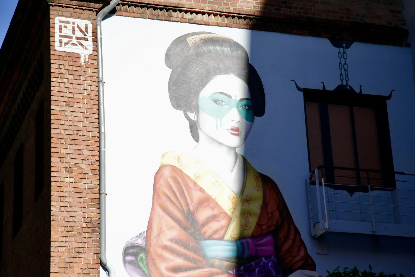 Keep heading up to the end of Bona-Peiser-Weg, follow the curve to the right, and stand in the middle of the bridge. Looking South you’ll see the Oberbaumbrücke - the bridge from the start of the walk - in the distance. Turning your gaze to the left you should see Vhils’ portrait of street artist Gould we talked about before.
